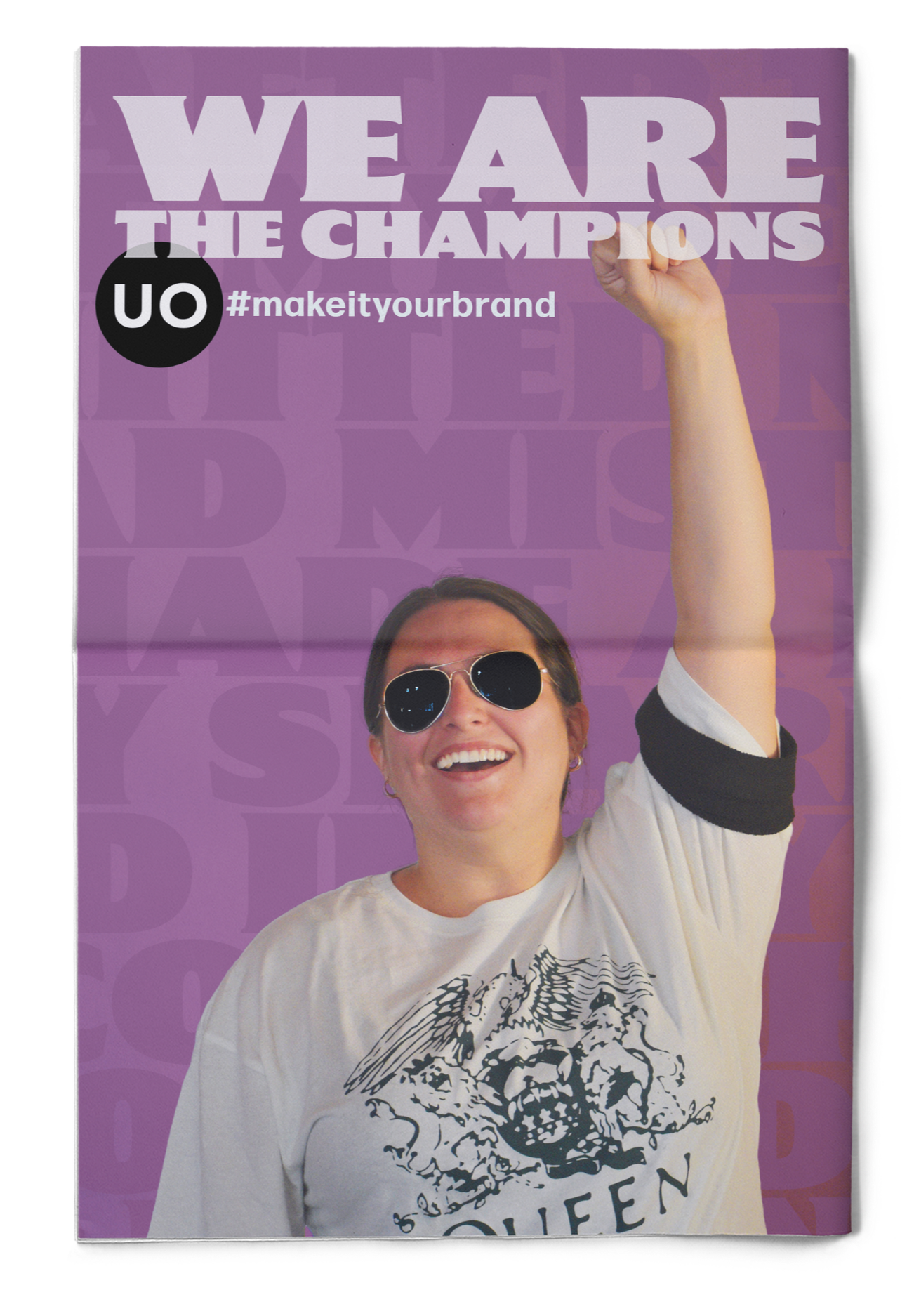 Urban Outfitters fashion ad campaign brings rock icons to life with models wearing Urban Outfitters band t-shirts featuring Metallica, Queen, and AC/DC, each styled to capture the essence of the legendary musicians themselves. Merging vintage rock energy with modern streetwear celebrates the connection between music, fashion, and individuality. The campaign includes an in-store poster, magazine spread, and newspaper ad that invites you to make your favorite band your brand.